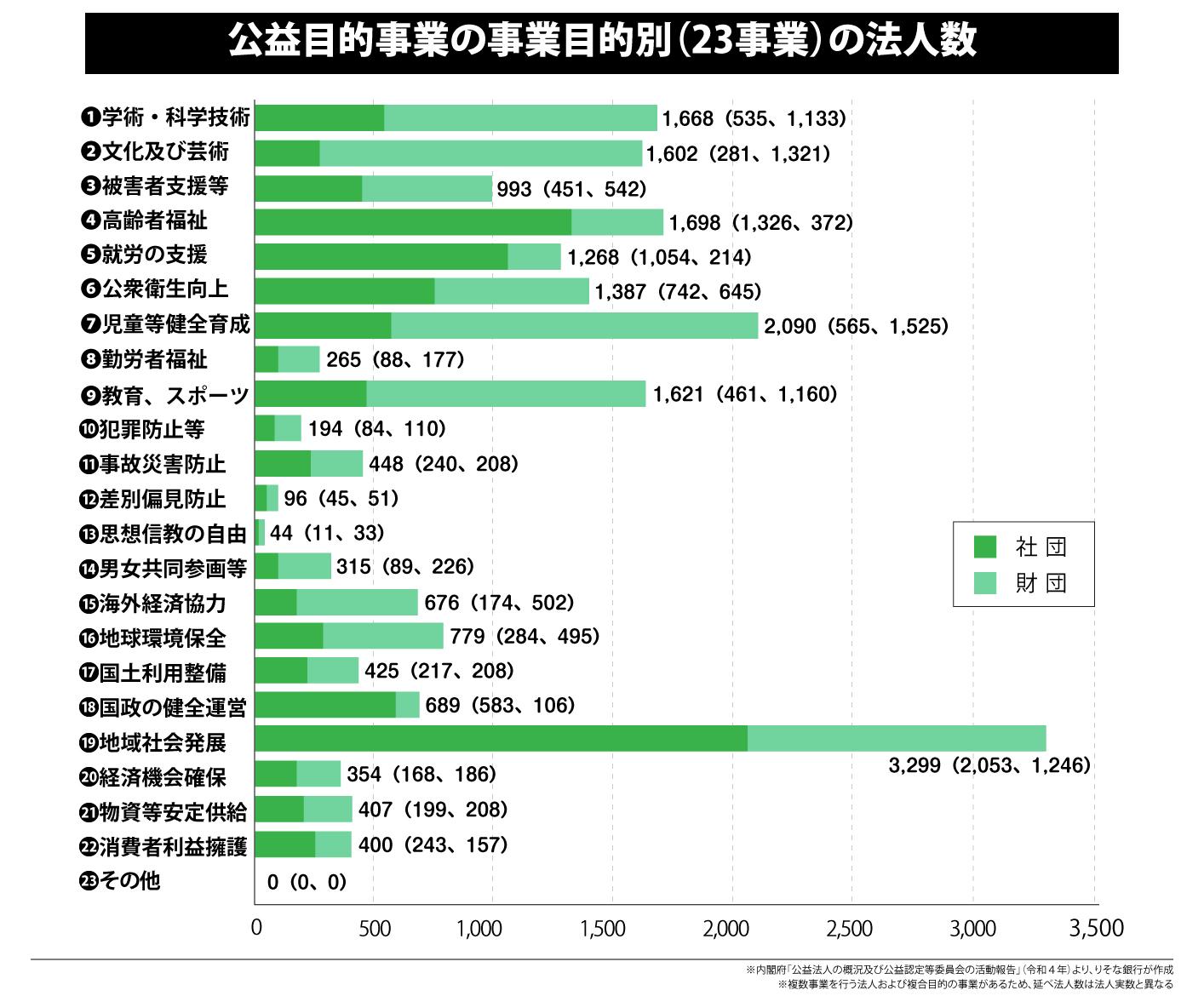 下図にあるように、さまざまな公益目的事業を行っている法人があります。