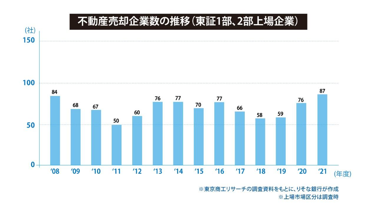 不動産大手・CBREの調査によれば2022年第2四半期の事業用不動産投資額は7190億円と、対前年同期比で38%もの増加となりました。コロナ禍以降の2年で日本の不動産投資はほぼ2倍になったとの調査もあります。コロナ禍による不動産相場の下落や円安、世界的な低金利政策などにより、日本の不動産の利回りは相対的に海外の他の国より相対的に高くなっているとされ、日本の不動産に対する内外の投資家の関心は高まるばかり。そんななか、不動産を売却した上場企業数はここ数年、増加傾向にあります。こうした流れを受けて、日本企業は自社の保有する不動産、いわゆるCRE(Corporate Real Estate)をどう有効活用するかという戦略の再構築を迫られています。