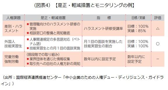人権課題の影響の評価ができたら、次はステップ3の「是正や軽減措置」を行い、ステップ4として、その効果をモニタリングします。