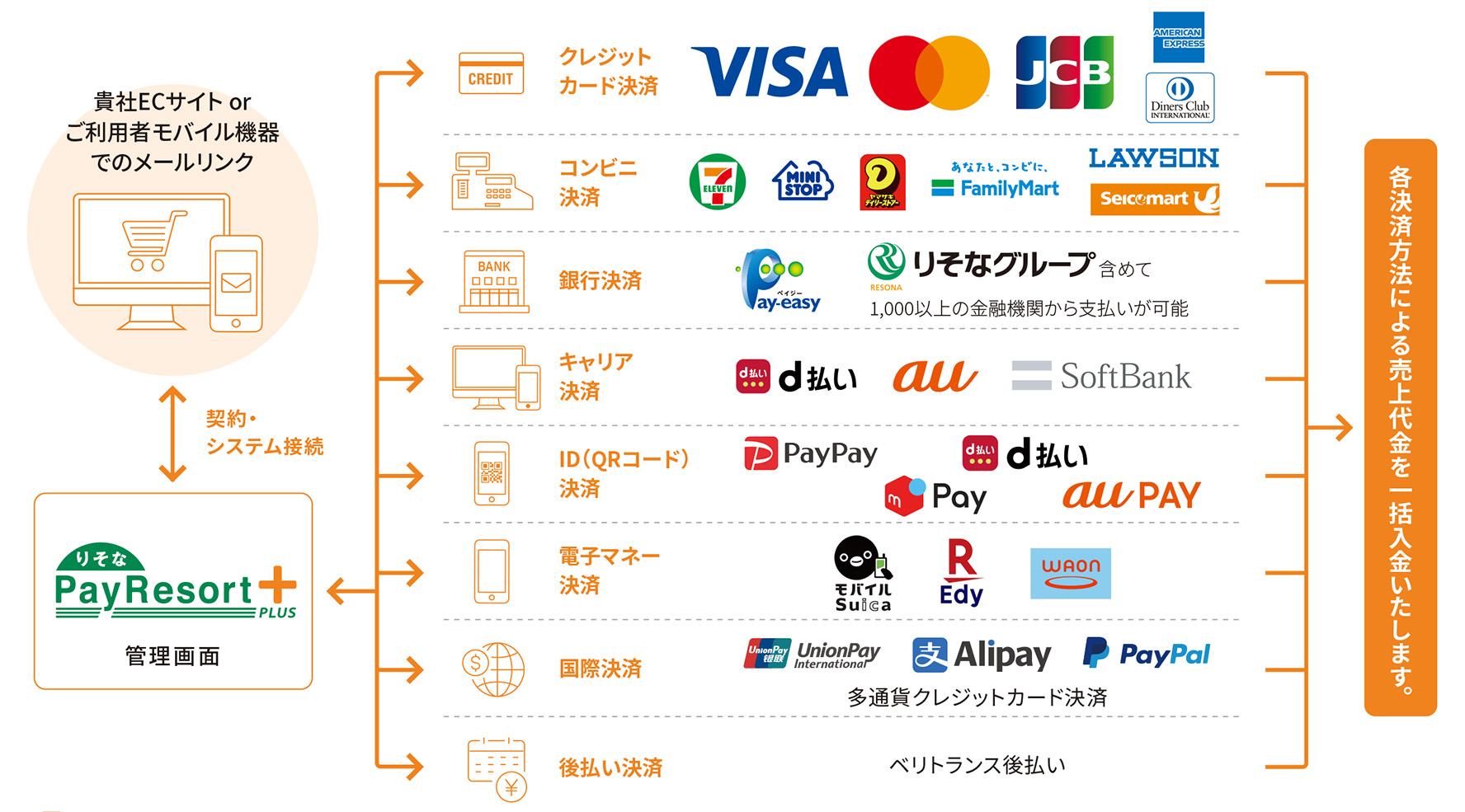 セミナー申込み時の支払い方法には、インターネット通販にも使える決済手段である「りそなPayResort+」をご利用いただきました。これにより最大8種類の決済方法(銀行振込、クレジットカード、コンビニ、ペイジー、多通貨決済)を1つの管理画面で一括管理が可能になります。
